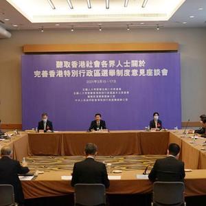 2月28日至3月1日,中央有關(guān)部門(mén)在深圳市召開(kāi)座談會(huì),廣泛、充分聽(tīng)取香港社會(huì)各界代表人士對(duì)完善“愛(ài)國(guó)者治港”有關(guān)制度的意見(jiàn)。全國(guó)兩會(huì)期間,相關(guān)部門(mén)又以多種方式,逐一聽(tīng)取了港區(qū)全國(guó)人大代表、政協(xié)委員的意見(jiàn)。