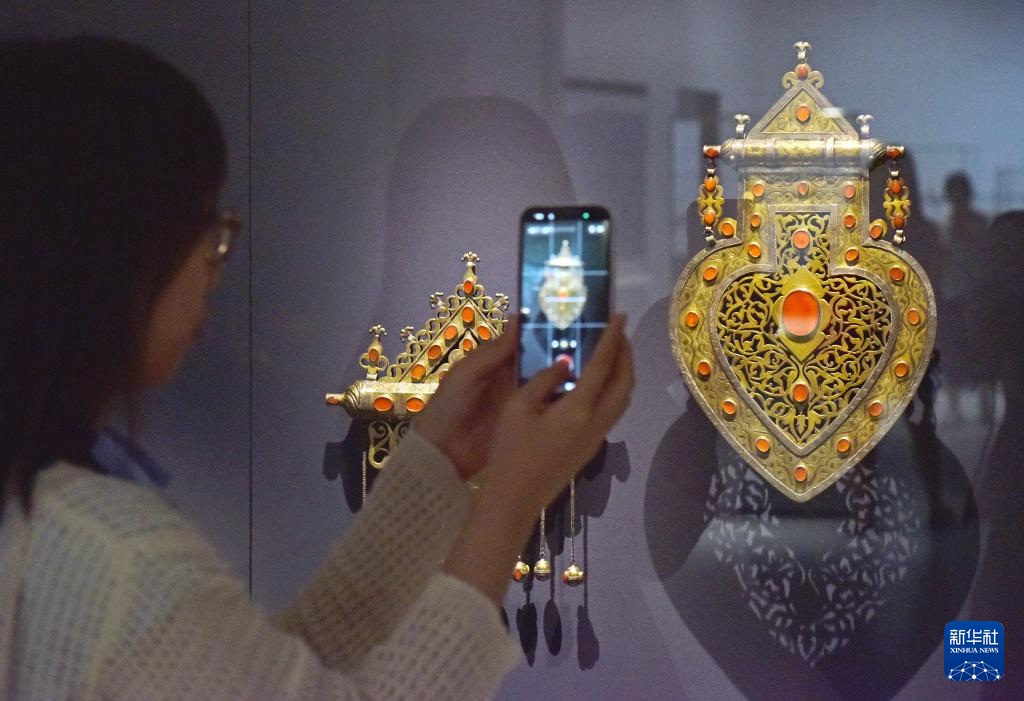 4月14日,媒体记者在参观一款项链。新华社记者 陈铎 摄