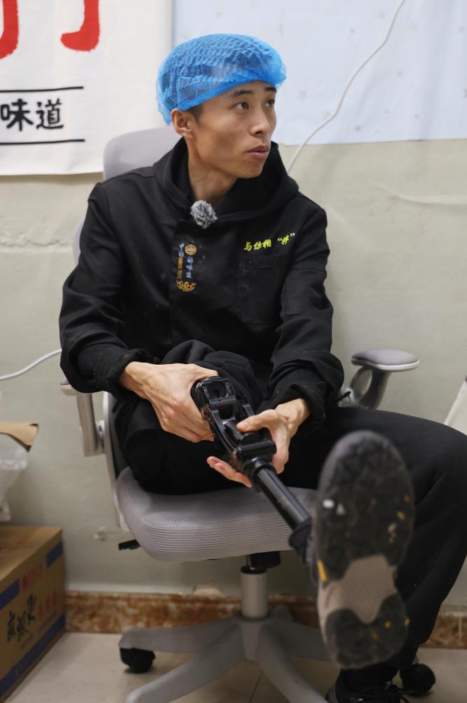 店长赵磊走起路来有些特别,因为多年前的一场意外致使他右腿截肢成了残疾人。靠着积极的心态和做麻辣拌的手艺,他咬牙撑起了自己的小店与生活。