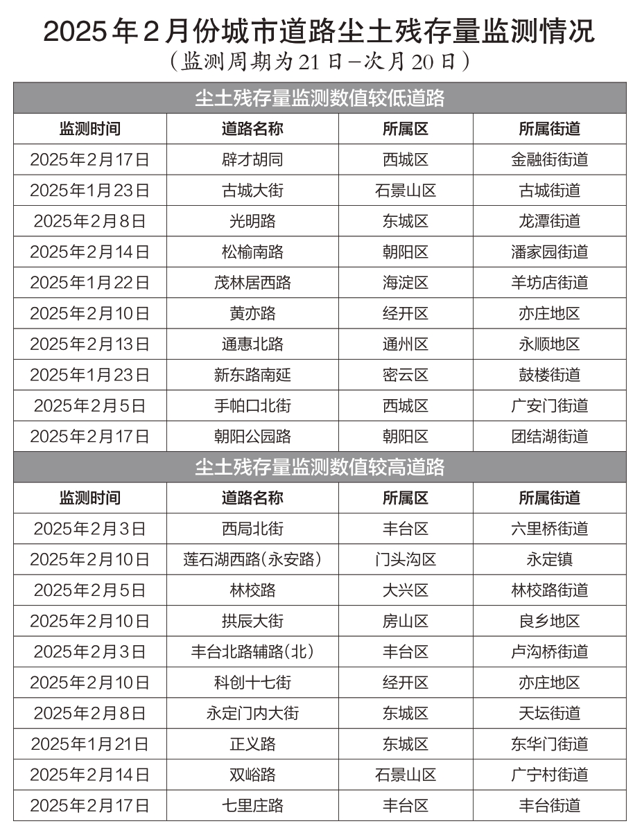 近年来尘土残存量检测数据显示,2024年市级作业道路监测均值较2023年下降13.3%;区属一级道路均值较2023年下降8.9%。北京市交出了一份不错的“洁净城市”成绩单。