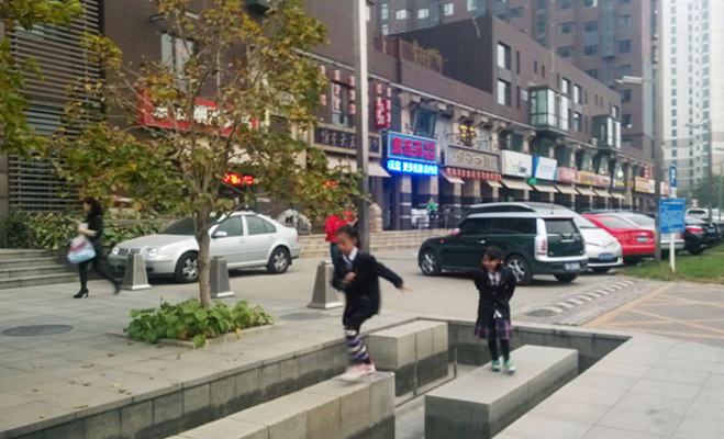 小區(qū)共有三個大門,只有一個大門設(shè)有門禁,其他兩個都可以隨意進(jìn)入,門口沒有保安,小區(qū)內(nèi)也沒有保安巡邏。小區(qū)內(nèi)的道路車輛可以隨意行走,可見沒有進(jìn)行人車分流,并且路上沒有緩沖帶。小區(qū)的外圍護(hù)欄十分矮,基本上與汽車同等高度,也沒有24小時監(jiān)控設(shè)施。