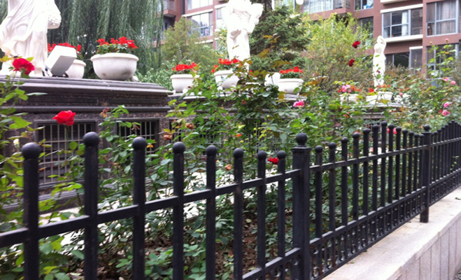在富力城的大社區(qū)之中,每個(gè)小區(qū)域都配有保安人員,也都是封閉式設(shè)計(jì),業(yè)主需要刷卡進(jìn)入。不過(guò)小區(qū)的外部護(hù)欄之低也是其他樓盤(pán)“不可比擬”的。這種護(hù)欄基本上起不到安保的作用,并且院中場(chǎng)景一覽無(wú)余。