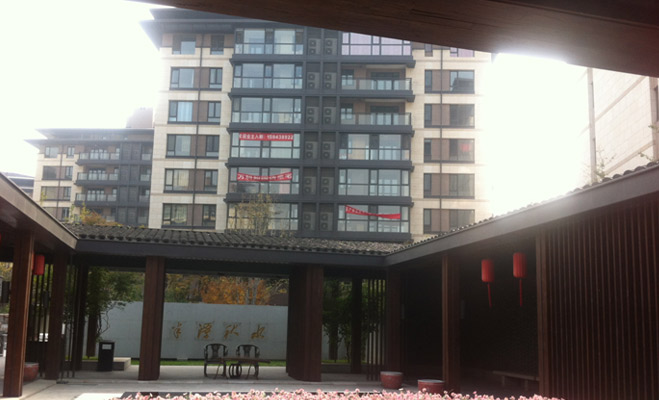 記者進(jìn)入萬科五礦如園南區(qū),首先被吸引的是入堂口的“半潭秋水”。庭院中一潭水池,而水池旁還設(shè)有一臺古琴,頗有幾分韻味。再往小區(qū)內(nèi)進(jìn)入,還有一片小竹林。據(jù)了解,如園共有十六個院落,分別以春夏秋冬、琴棋書畫、風(fēng)華雪月、梅蘭竹菊中的十六個字作為主題。