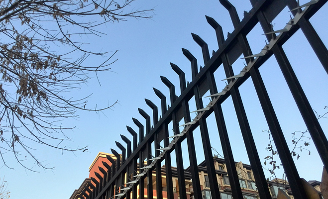保安對小區(qū)進(jìn)行24小時(shí)巡視,并配有防暴鋼叉等安防裝備。小區(qū)的圍墻柵欄設(shè)有金屬刺,具有較強(qiáng)的防攀爬功能。小區(qū)實(shí)現(xiàn)了嚴(yán)格的人車分流。