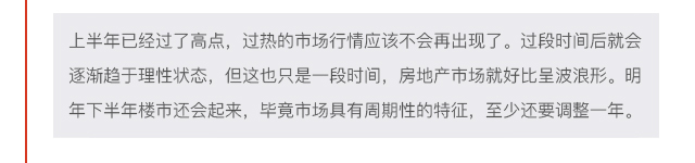 對于下半年樓市走勢,畢興礦認(rèn)為,下半年肯定沒有上半年這么好...