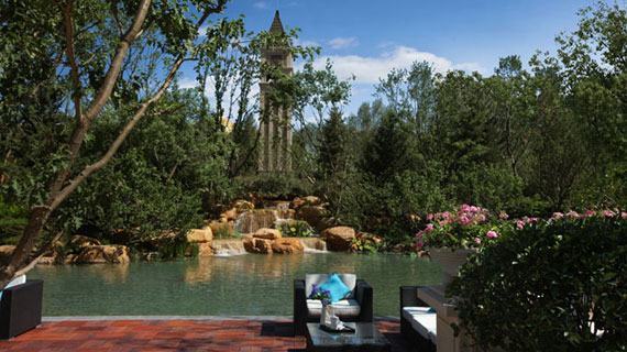 林語墅景觀是另外一大特色,花叢、溪畔、用黃蠟石堆積的假山既有西方皇家的規(guī)制,又體現(xiàn)東方禪境園林的意蘊。記者在現(xiàn)場看到項目內(nèi)還配有3000平的高爾夫推桿練習場。置身其外,卻也能體會居者頂級品味。