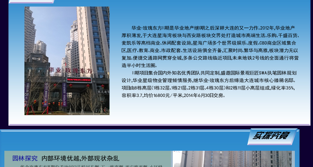 ????說起大連的幾大商圈,西安路與和平廣場不得不提,而位于這兩個商圈中間位置的華業(yè)玫瑰東方Ⅱ期,成為眾多購房者關(guān)注的焦點(diǎn),本期的神秘訪客我們就實(shí)地探訪華業(yè)玫瑰東方Ⅱ期,看一看它的優(yōu)勢與不足。