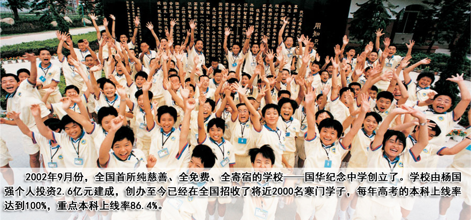 在楊國華去世10多年以后,楊國強(qiáng)計(jì)劃,以大哥的名字成立一所學(xué)校,一所只招收中國最貧困、最優(yōu)秀學(xué)生的全日制慈善高中——國華紀(jì)念中學(xué),以此來紀(jì)念英年早逝的大哥。