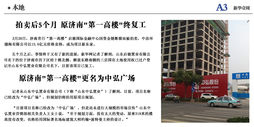拍賣后5個月 原濟南"第一高"終復(fù)工