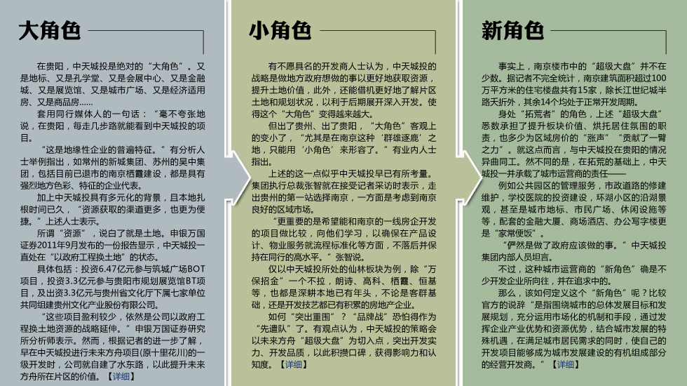 在貴陽(yáng),中天城投是絕對(duì)的“大角色”。又是地標(biāo)、又是孔學(xué)堂、又是會(huì)展中心、又是金融城、又是展覽館、又是城市廣場(chǎng)、又是經(jīng)濟(jì)適用房、又是商品房 …[詳細(xì)]