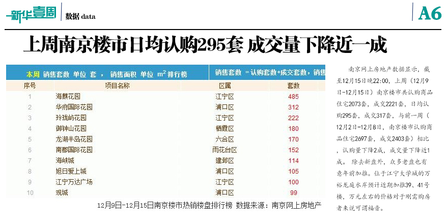 上周南京日均認(rèn)購(gòu)295套