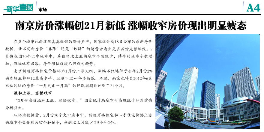 南京房?jī)r(jià)漲幅創(chuàng)21月新低