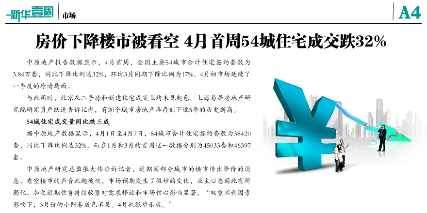 4月首周54城住宅成交跌32%