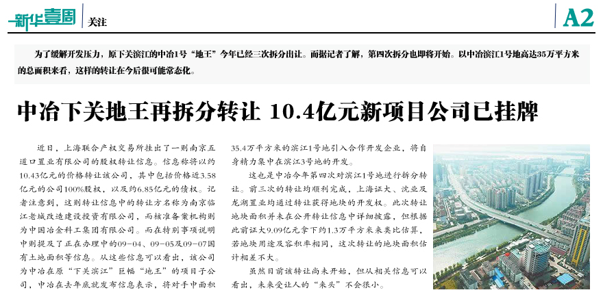中冶下關(guān)地王再拆分轉(zhuǎn)讓