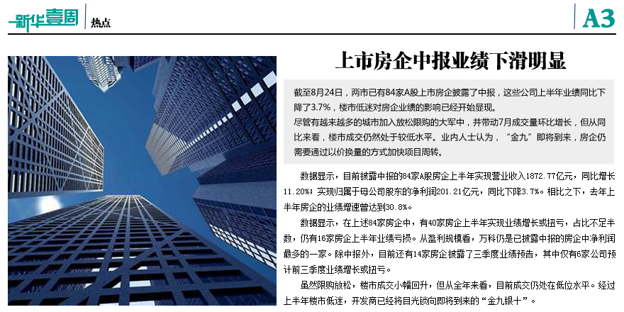 上市房企中報(bào)業(yè)績(jī)下滑明顯