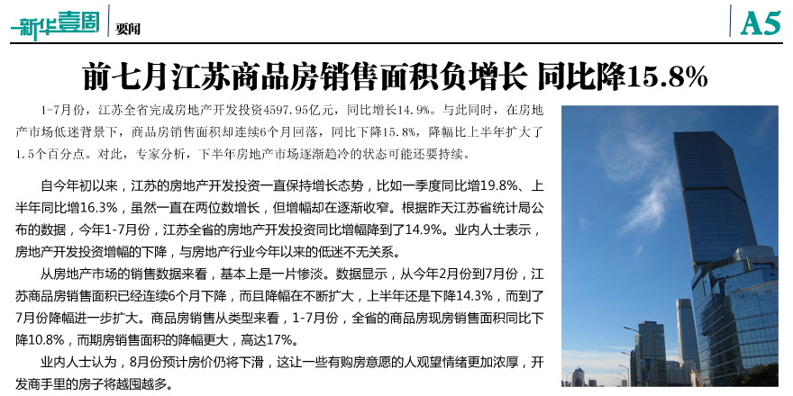 前七月江蘇商品房銷(xiāo)售面積負(fù)增長(zhǎng)