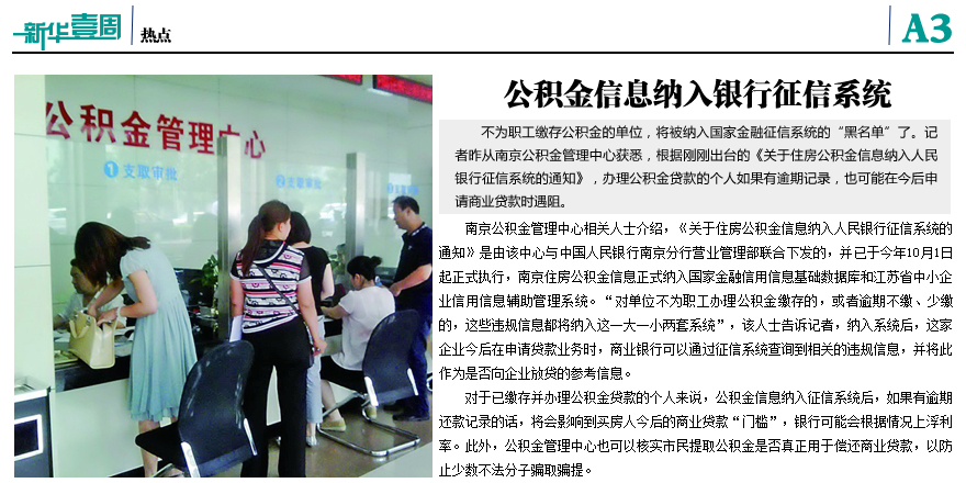 公積金信息納入銀行征信系統(tǒng)