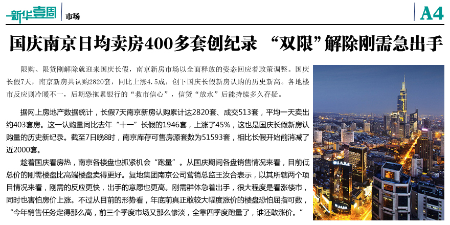 國慶南京日均賣房創(chuàng)紀(jì)錄