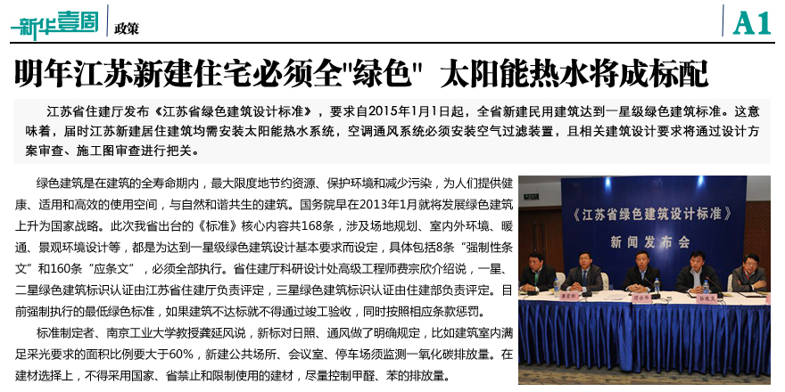江蘇明年新建住宅必須全"綠色"
