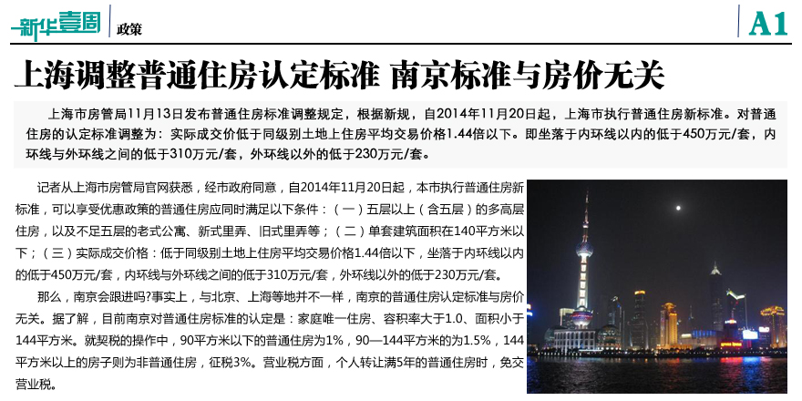 上海調(diào)整普通住房認定標(biāo)準(zhǔn)