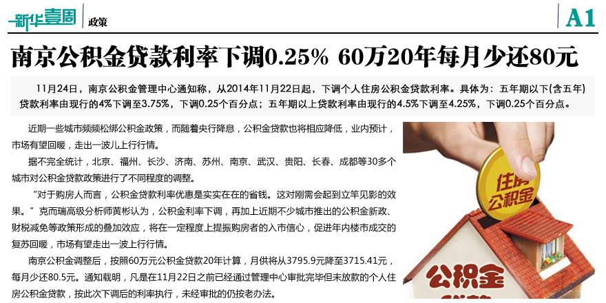 南京公積金貸款利率下調0.25%