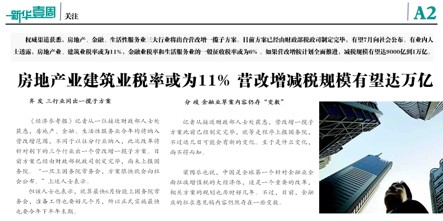 房地產(chǎn)業(yè)、建筑業(yè)稅率或為11%