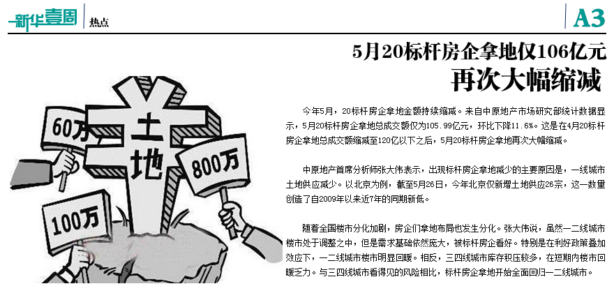 5月20標桿房企拿地僅106億