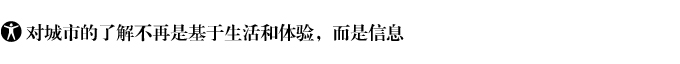 ![]() 城市越冒險(xiǎn),生活其中的人們對(duì)城市就會(huì)越陌生。可見的事實(shí)是,人們對(duì)城市的了解不再是基于生活和體驗(yàn),而是信息。此前延續(xù)多年的城市生活規(guī)律和節(jié)奏被互聯(lián)網(wǎng)打破了,互聯(lián)網(wǎng)把城市的每一部分都終端化,城市的每一個(gè)具有生命特征的組織不再受生理和情理的連接,而是信息的連接。一方面,信息成為連接人與人、人與城市、城市與城市的單一工具,信息把城市圈成了地域以外的另一種空間,只是,信息的流動(dòng)性并沒有協(xié)助人了解城市,反倒是增加了越來越多的陌生。 另一方面,陌生又完成了城市開放意象的表達(dá),這也是一座城市為什么能吸引外來者旅游、造訪、定居的重要原因。信息的獨(dú)立和集合讓人、讓城市的局部在封閉系統(tǒng)之外,又像互聯(lián)網(wǎng)時(shí)代的物流一樣多樣化、復(fù)合化。 |