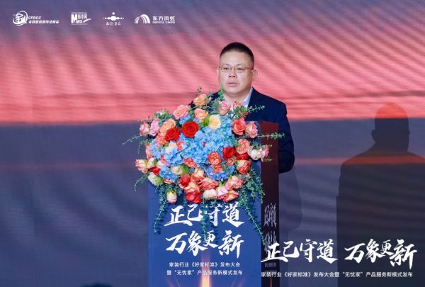 接下来,“无忧家”体系首席推荐官、东方雨虹民用建材集团副总裁熊卫锋宣布了东方雨虹家装战略升级计划,并重磅发布了全新的家装产品体系与服务模式。
