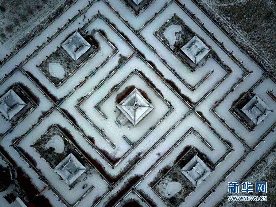 2月28日拍攝的甘肅省張掖市甘州區(qū)堿灘鎮(zhèn)古城村雪景(無人機照片)。新華社發(fā)(成學(xué)磊 攝)
