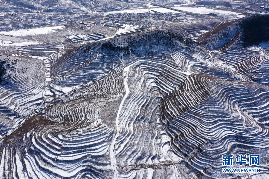 3月1日在河北省唐山市遷西縣新莊子鄉(xiāng)新莊子村拍攝的雪景(無人機(jī)照片) 。新華社發(fā)(王愛軍 攝)