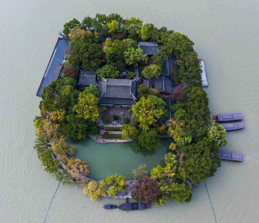 空中俯瞰嘉興南湖湖心島(無人機照片)新華社記者 徐昱攝