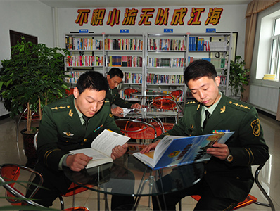 官兵在警營圖書室看書