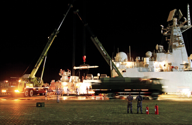 ????To simulate the complicated electromagnetic environments in sea warfare, the South China Sea Fleet integrated ship-borne and missile-borne electronic interference equipment with those onshore and on target vessels. The combat was extremely tough.