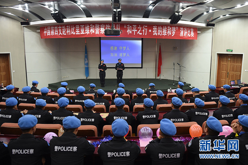 ????20日,中國第四支赴利比里亞維和警察防暴隊在河北廊坊的中國維和警察培訓中心舉辦了以“和平之行·我的維和夢”為主題的演講比賽。