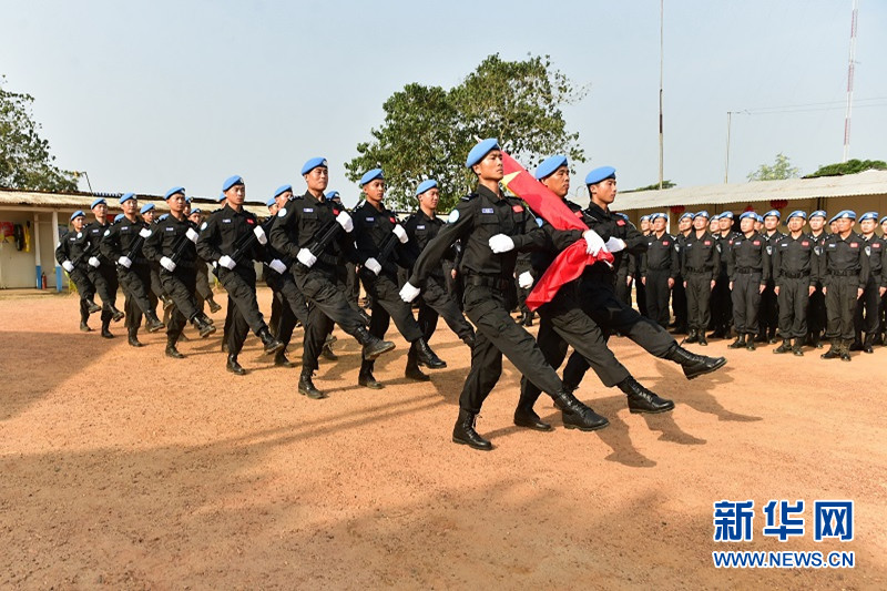 中國第三支赴利比里亞維和警察防暴隊(duì)舉行升旗儀式迎接2016年到來