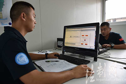 圖為防暴隊(duì)隊(duì)員正在設(shè)計(jì)路名