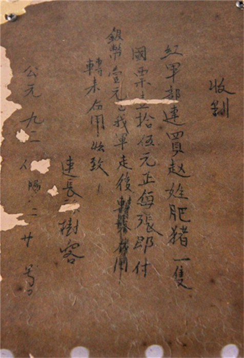 ????70多年過去,木板上的文字依稀可辨:“我們在這塊田內(nèi)割了青稞一千斤,我們自己吃了。這塊木板可以作為我們購買你們這些青稞的憑證,請你們歸來以后,拿住這塊木板,向任何紅軍部隊或蘇維埃政府,都可兌取與我們吃你們青稞價值相等的銀子、茶葉或你們所需的物品。在你們還未曾兌得這些東西之前,需要好好保存這塊木牌子”,落款是前敵總政治部。