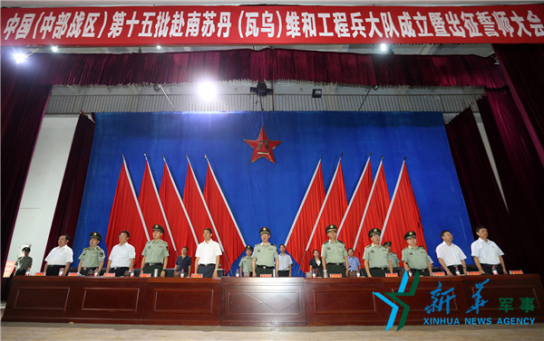 中國第十五批赴南蘇丹(瓦烏)維和工程兵大隊成立暨出征誓師大會12日上午在陸軍第54集團軍舉行。