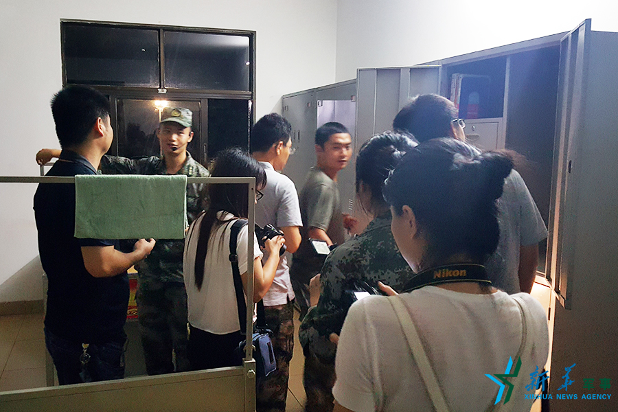 網(wǎng)絡名人以及媒體代表參觀連隊營區(qū)、內(nèi)務設施。李朋芳 攝