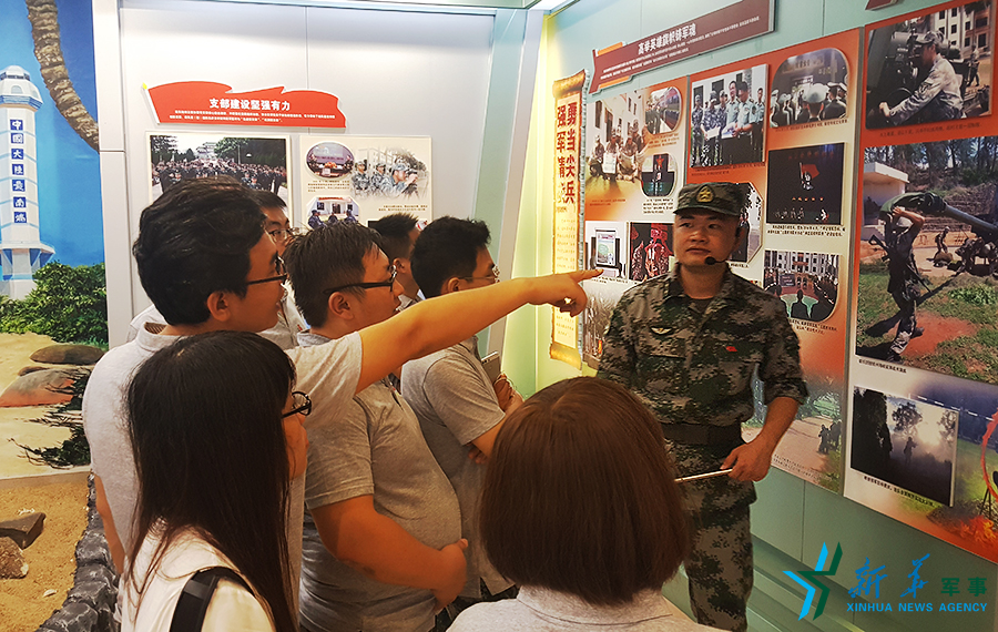 網(wǎng)絡名人以及媒體代表參觀連隊榮譽室。李朋芳 攝