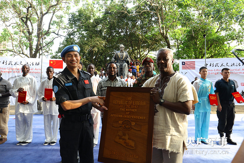 ????11月11日,中國駐利比里亞大使館、中國第四支駐利比里亞維和警察防暴隊攜同利比里亞國家武術(shù)協(xié)會在利比里亞大學(xué)舉行中利武術(shù)交流活動。