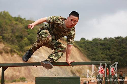 圖為大隊官兵正在快速進(jìn)行障礙跑訓(xùn)練