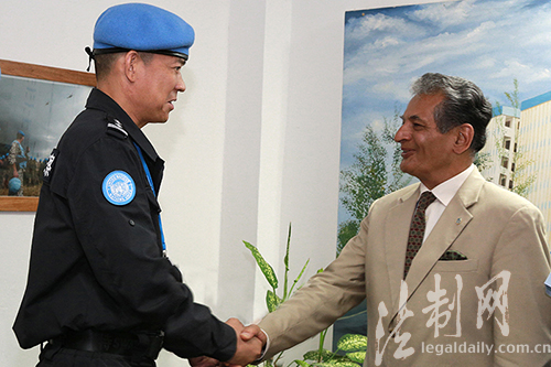 圖為聯(lián)利團(tuán)秘書長特別代表法里德·扎里夫接見防暴隊(duì)陳利華政委