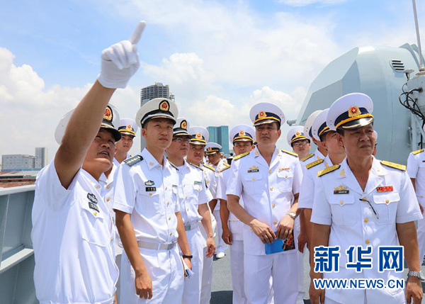 5月6日,在越南胡志明市,越方軍官團(tuán)參觀中國海軍遠(yuǎn)航訪問編隊(duì)導(dǎo)彈驅(qū)逐艦長春艦。 新華社發(fā)(史奎吉攝)