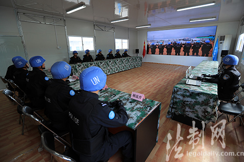 圖為維和警察防暴隊(duì)召開勤務(wù)分析會