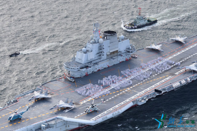 ↑7月7日上午,海軍航母編隊抵達香港。700余名官兵在遼寧艦飛行甲板上列隊排成“香港你好”字樣,以海軍獨有的方式向香港市民表示親切、誠摯問候。解放軍駐香港部隊提供