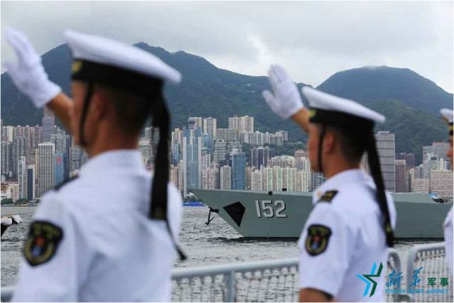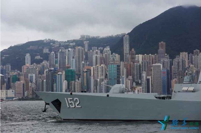 ↑7月7日,海軍濟南艦駛?cè)胂愀郯捍薮a頭。新華社記者 曾濤 攝