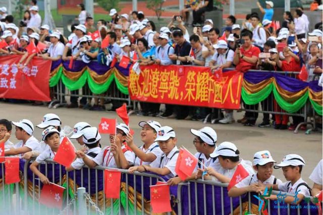 ↑7月7日,香港民眾在昂船洲碼頭歡迎遼寧艦編隊。新華社記者 曾濤 攝