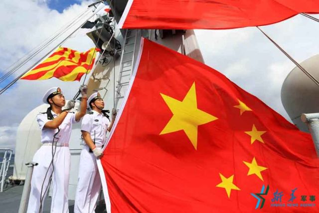 ↑遼寧艦在維多利亞灣泊后,信號兵將國旗升起。張凱 攝(據(jù)新華社客戶端)
